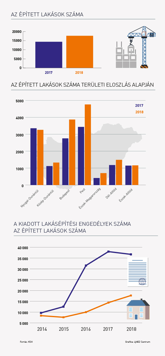 A Központi Statisztikai Hivatal adatai szerint 2018-ban 23 százalékkal több lakás épült, mint 2017-ben, a jelentés szerint azonban országszerte nagymértékű szórás tapasztalható. Budapesten és Pest megyében ugyanis közel 40 százalékkal bővült az új lakások piaca, az ország többi régiója azonban ettől jelentősen elmaradt.