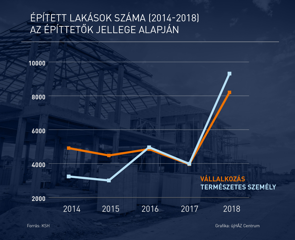 Ráadásul a természetes személyek által épített lakások aránya csökkent, amiből egyértelműen arra következtethetünk, hogy 2017-hez képest 5 százalékkal kevesebb család mert belevágni az építkezésbe - mutatnak rá az újHÁZ Centrum szakértői a KSH adataira hivatkozva.
