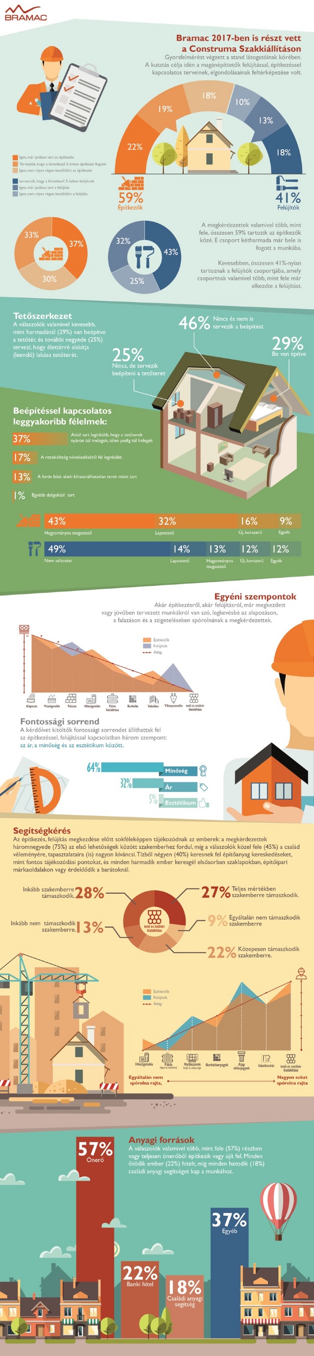 57 százalékban önerőből teszik vagy képzelik el a munkálatokat, minden ötödik válaszadó (22%) él banki hitellel, 18 százaléknak a család is besegít, 37 százalékuk pedig egyéb forrásokra támaszkodna, mint például CSOK, egyéb kölcsönök, stb. Ezt a növekedést mutatja az is, hogy a kutatás résztvevői a minőséget (64%) fontosabbnak tartják az árnál (32%), harmadikként pedig az esztétikum követi őket a sorban.