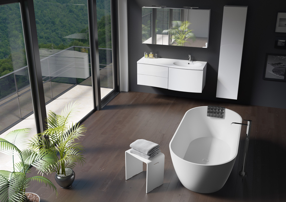 A nagyobb fürdőszobák esetében az idei évben is megfigyelhető, hogy egyre inkább nő az igény a térben szabadon álló kádak iránt, melyek abszolút látványos elemei lehetnek a helyiségnek, s kiváló fókuszpontként is szolgálhatnak. Egy-egy látványosabb darab esetén törekedjünk arra, hogy olyan burkolóanyagokat válasszunk, melyek visszafogottságukkal ki tudják emelni a különleges kád formáját, egyedülálló lábazatát.