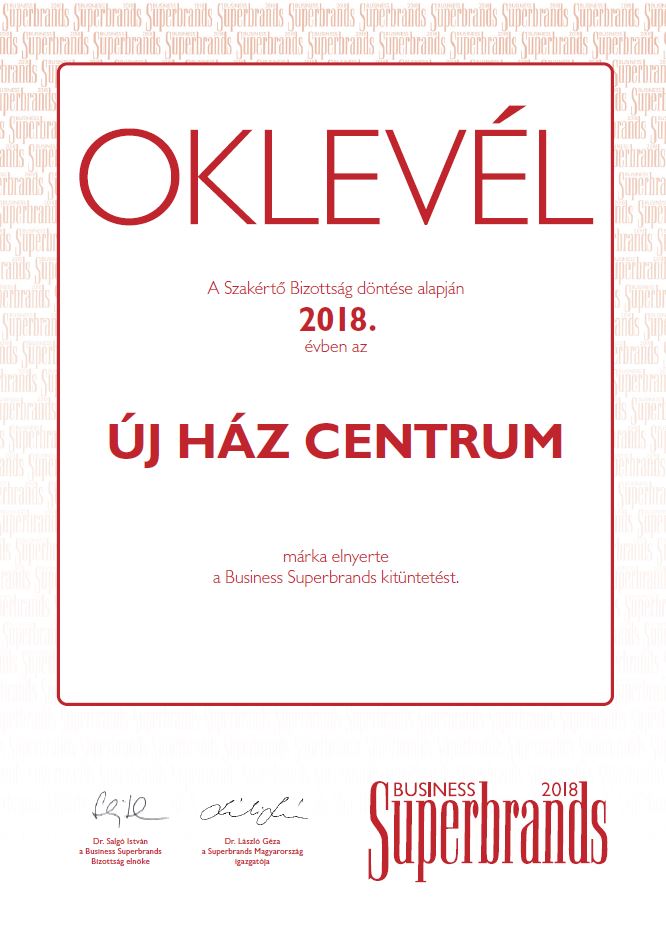 Idén tizenegyedik alkalommal ítélte oda a Superbrands Magyarország Szakértői Bizottsága a Business Superbrands díjakat. Az újHÁZ Centrum immár nyolcadik alkalommal nyerte el e kitüntetést a független szakemberekből álló zsűritől.