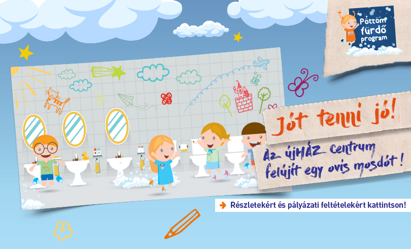 Az óvodák 2018 június 30-ig pályázhatnak, hogy elnyerjék az újHÁZ Centrum egymillió forintos támogatását. Az építőanyag-kereskedelmi hálózat az elmúlt évek alatt több ezer felépített és felújított otthon létrehozásában nyújtott szakértő segítséget. A társadalmi felelősségvállalás jegyében vállalt cél, hogy a gyerekek által megálmodott és lerajzolt mosdót megalkossa a vállalat.