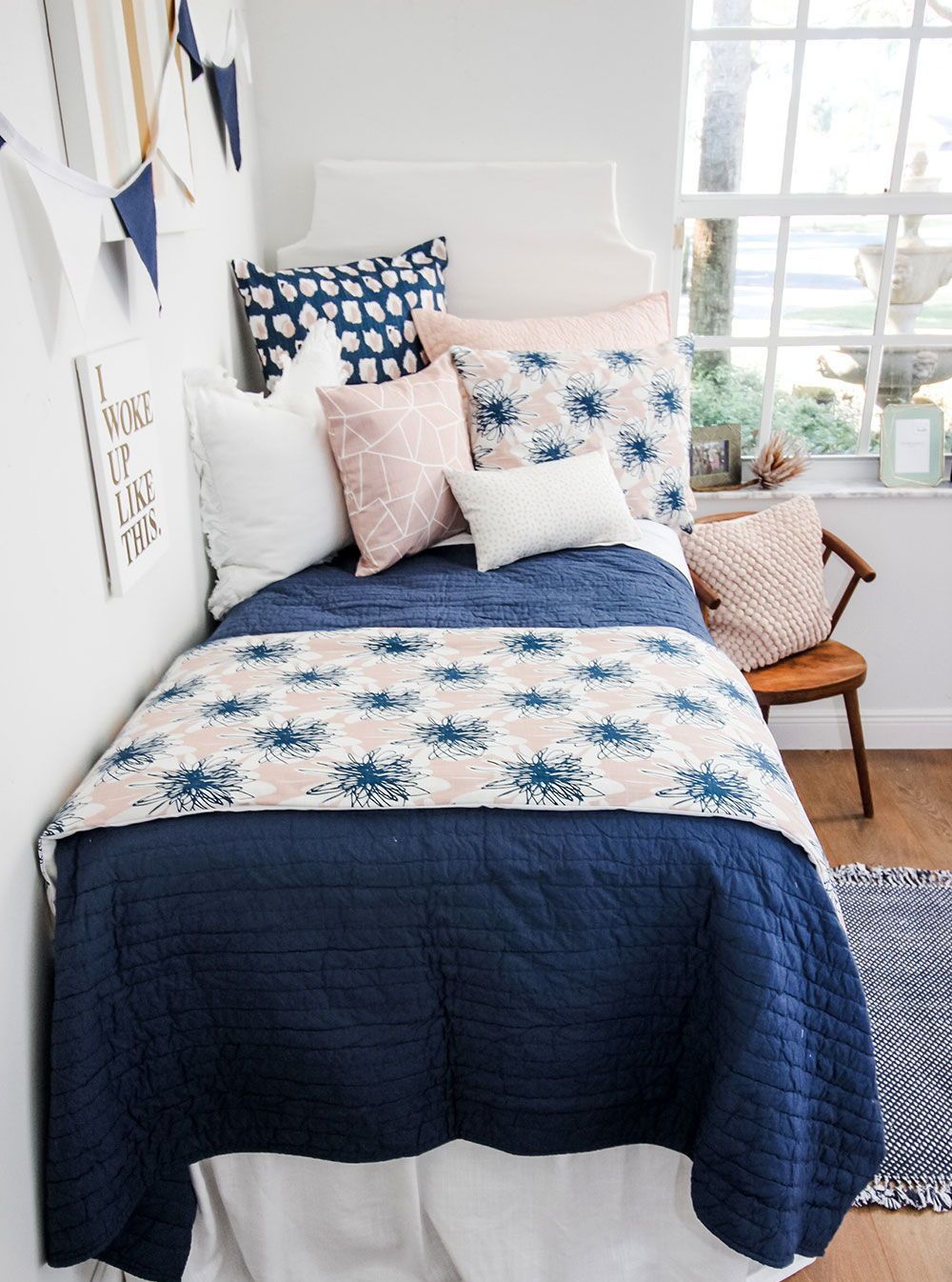 A textíliák bátor és változatos használatával olcsón, mégis jelentős mértékben meg tudjuk határozni egy kisméretű helyiség arcát. Használjunk ágyterítőt, különböző méretű díszpárnákat egymással harmonizáló színekben, az ágy elé pedig terítsünk kisméretű szőttest. A drapériák anyagválasztásánál is legyünk merészek: a szőnyeg bátran legyen durvább anyagú, a takaró azonban pihe-puha, a díszpárnáknál pedig ötvözhetjük a bársonyt és a selymet is ízlésesen.