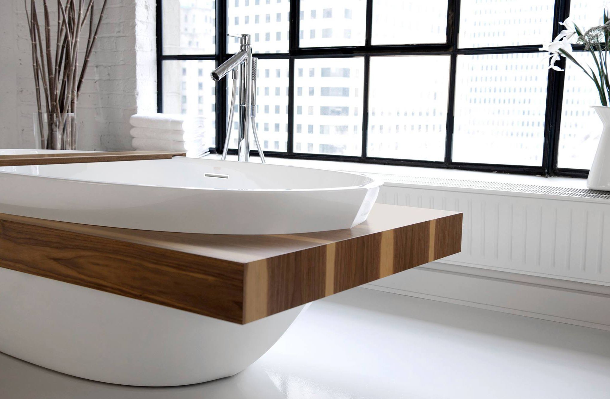 A Designer Bath díjnyertes kádja a minimalista és a praktikumra törekvők fürdőszobájának lehet központi eleme. A legmagasabb minőségű akrilból készült szabadon álló kádat természetes fa pult öleli körbe, amelyre tisztálkodószereket, vagy akár egy üveg behűtött pezsgőt is helyezhetünk.