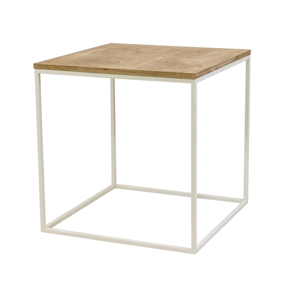 Főként a skandináv belsőépítészeti trendekbe illik ez a teljes mértékben letisztult lengyel tervezésű asztal, amely egy kisméretű konyha tökéletes reggelizősarkának központi eleme lehet. A fehér vasszerkezet és a natúr asztallap párosa a természetességet hirdeti.