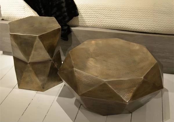 A retróstílus továbbra is hatalmas népszerűségnek örvend a lakberendezők körében. A híres tervezővállalat, a Baumgardner által tervezett asztalkák textúrája, formavilága és fémes színe is visszarepít bennünket az 1950-es évekbe. A kiegészítők alumíniumból készültek, az egyedi mintázatot pedig egy rusztikus kalapáccsal érték el.