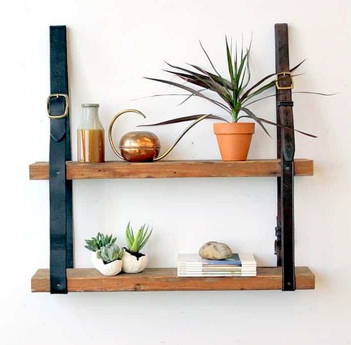 Erős, valódi bőr nadrágszíjak, két léc és pár nagyobb szög segítségével elképesztően látványos, meghökkentő polcot készíthetünk apró kiegészítőink számára.