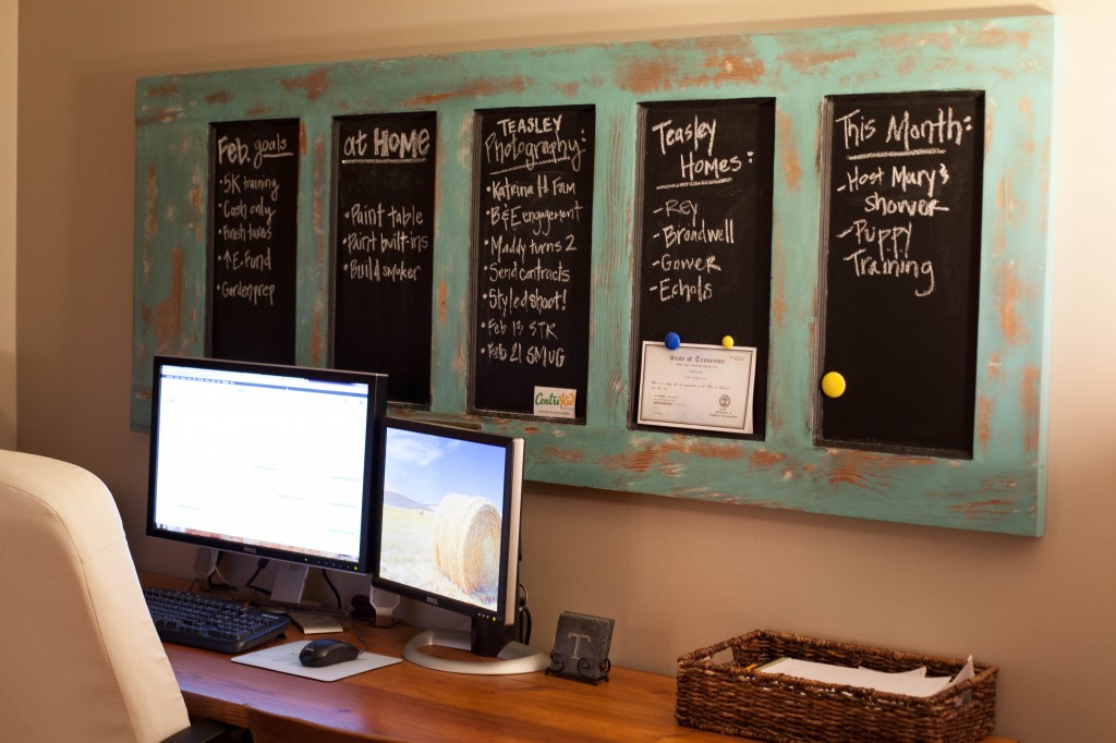 A régi kazettás ajtók elfordítva kiváló üzenőfalként vagy képkeretként szolgálhatnak számunkra. Hagyjuk meg kopottas, rusztikus hangulatában, csupán magukat a kazettákat csiszoljuk egyenletesre géppel vagy csiszolópapírral. Ezt követően, amennyiben üzenőfalat szeretnénk készíteni, kenjük le a kazettákat két réteg fekete táblafestékkel és hagyjuk teljesen megszáradni. A rögzítést követően vezethetjük rajta heti feladatainkat, havi terveinket, vagy bakancslistás kívánságainkat is.