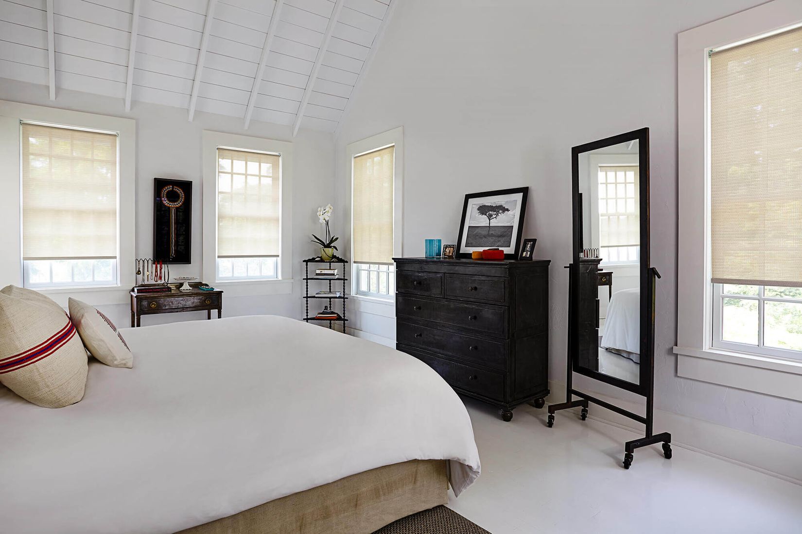 Köztudott, hogy a fekete illetve a sötét árnyalatokból készült textíliák, bútorok és kiegészítők szabályosan elnyelik a hőt, így jó pár fokkal magasabb hőmérsékletet tapasztalunk a szobánkban. Amennyiben azonban a hálóban világos teret teremtünk, pontosan az ellentétét tapasztaljuk meg. Éppen ezért törekedjünk arra a nyári időszakban, hogy a fehér és a világos pasztell árnyalatokban játszó drapériákat és kiegészítőket használjuk. Ha pedig még a falakat is fehérre festjük, a teret is növelhetjük optikailag.
