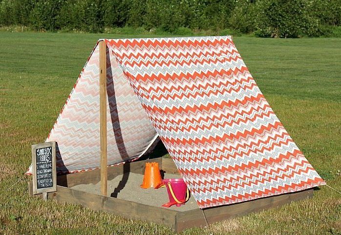 Pár deszka, egy már nem használt szép terítő és némi kézügyesség kell ahhoz, hogy igazán egyedi homokozót varázsoljunk a kertbe. Nincs más dolgunk, mint hogy elsőként elkészítsük a homokozó keretét, majd a sátortető vázát vékonyabb lécek segítségével.