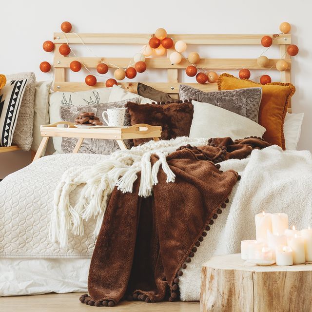 A kontrasztos anyagok összepárosítása mindig jó döntés lehet. Különösen igaz ez az őszi dekoráció kialakításánál, hiszen így akár az évszak sokféle arcára is utalhatunk. Az ágytakarókat illetően törekedjünk arra, hogy minél puhább, melegebb textíliákat válasszunk, ha pedig a késő őszi havas, deres tájat és az elmaradhatatlan sültgesztenyét akarjuk becsempészni hálószobánkba, társítsuk a sötétbarnához a törtfehéret. Persze jöhetnek a pomponok, rojtok is, amelyek játékosságot visznek a kiegészítőkbe.