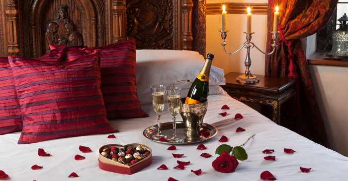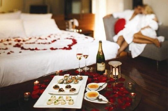 A hálószobában a fésülködőasztalra készítsünk be frissen behűtött pezsgőt poharakkal és olyan finom falatokkal, mint a csokoládéba mártott eper vagy éppen szőlő. Néhány falat ezekből a vágyfokozó ételekből, és máris maximális fordulatszámra kapcsol a Valentin-napi hangulat.