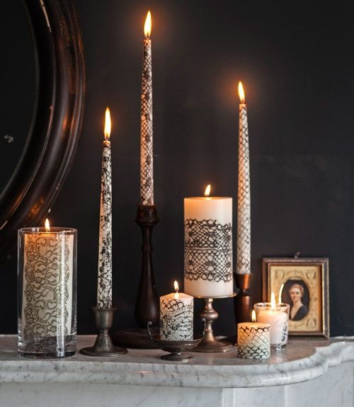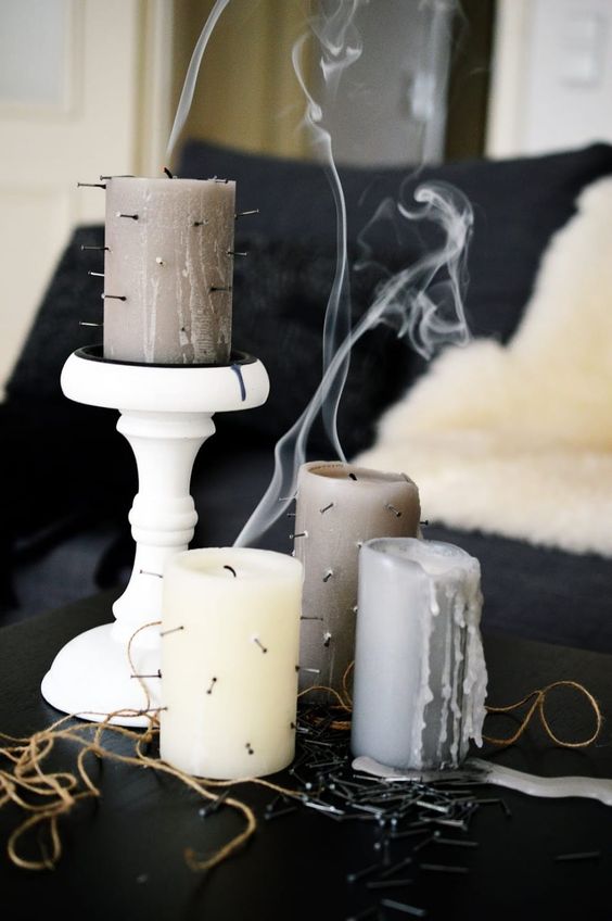 Néhány egyszerű fekete gyertya már önmagában is borzongató érzéseket kelt, de akár mi magunk is készíthetünk egyedi, mégis hangulatos gyertyákat üvegből. Mindemellett számos extra dizájnnal ellátott gyertyát is beszerezhetünk a hangulat fogokozására.