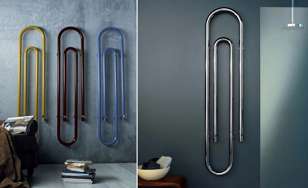 Az egyedi radiátorok sok formatervezőt megihlettek már, így akár túlméretezett gémkapcsokkal is megoldhatjuk a fűtésünket. Ez a forma függőlegesen és vízszintesen is érdekes látványelem. Színek, méretek, többszörözés és az orientáció, mind tovább fokozzák a látványt.