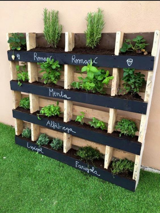 A megvásárolt raklapot ellenőrizzük le, hogy mindenhol megfelelőek-e a rögzítések. Ha valahol instabilnak érezzük, csavarral erősítsük meg. Állítsuk fel, hogy meglássuk azokat a rekeszeket, amik alkalmasak arra, hogy növényekkel gazdagítsuk. Elsőként ezeket a rekeszeket béleljük ki valamilyen nejlonnal, talán a legalkalmasabb a célra az erős kukazsák lehet. Ezt követően töltsük fel virágfölddel és ültessük tele fűszernövényekkel. A virágok alatti fa részt érdemes táblafestékkel lekenni, amelyre fel is írhatjuk, hogy az egyes rekeszeket milyen illatozó növényekkel ültettük tele.