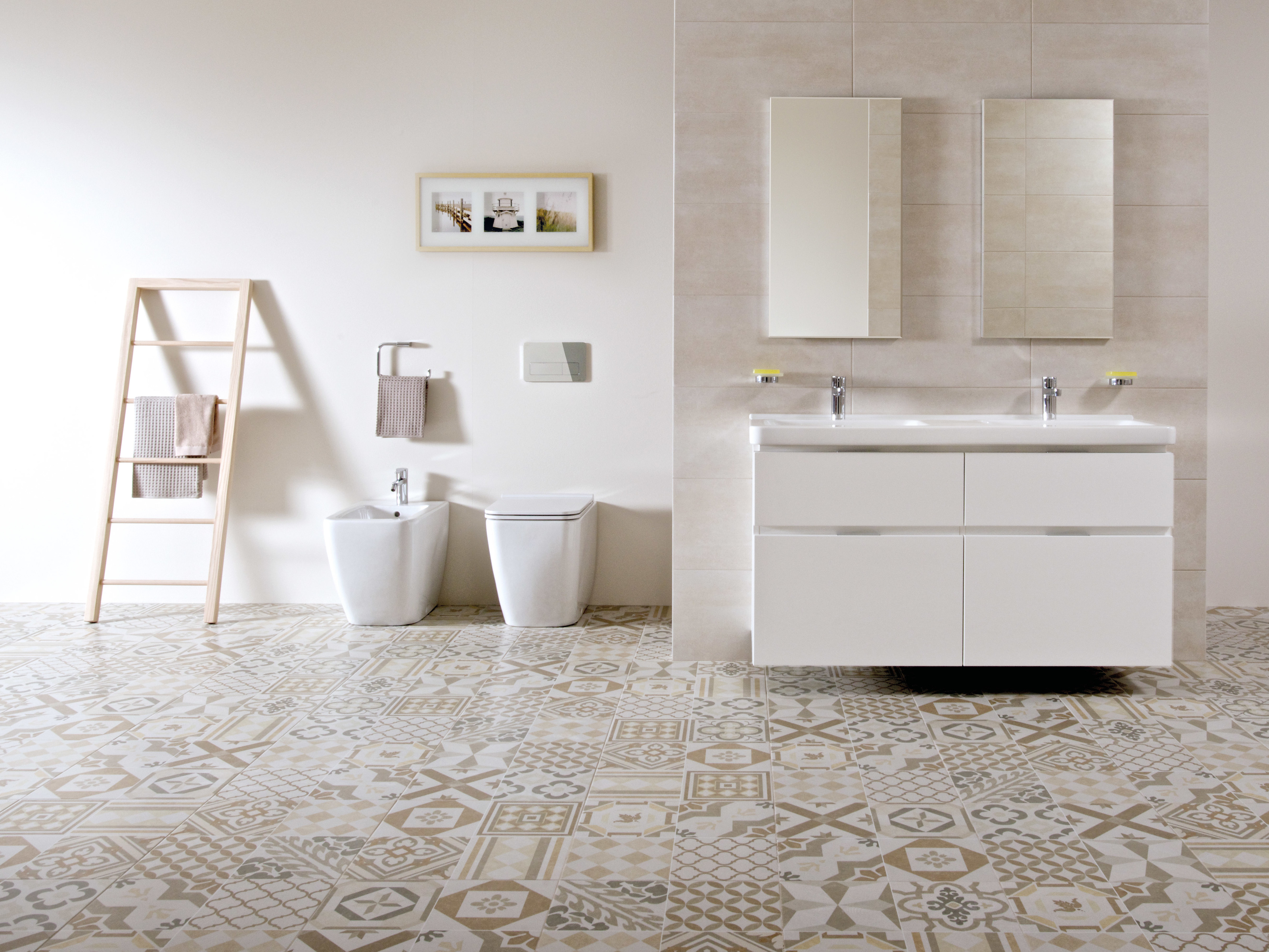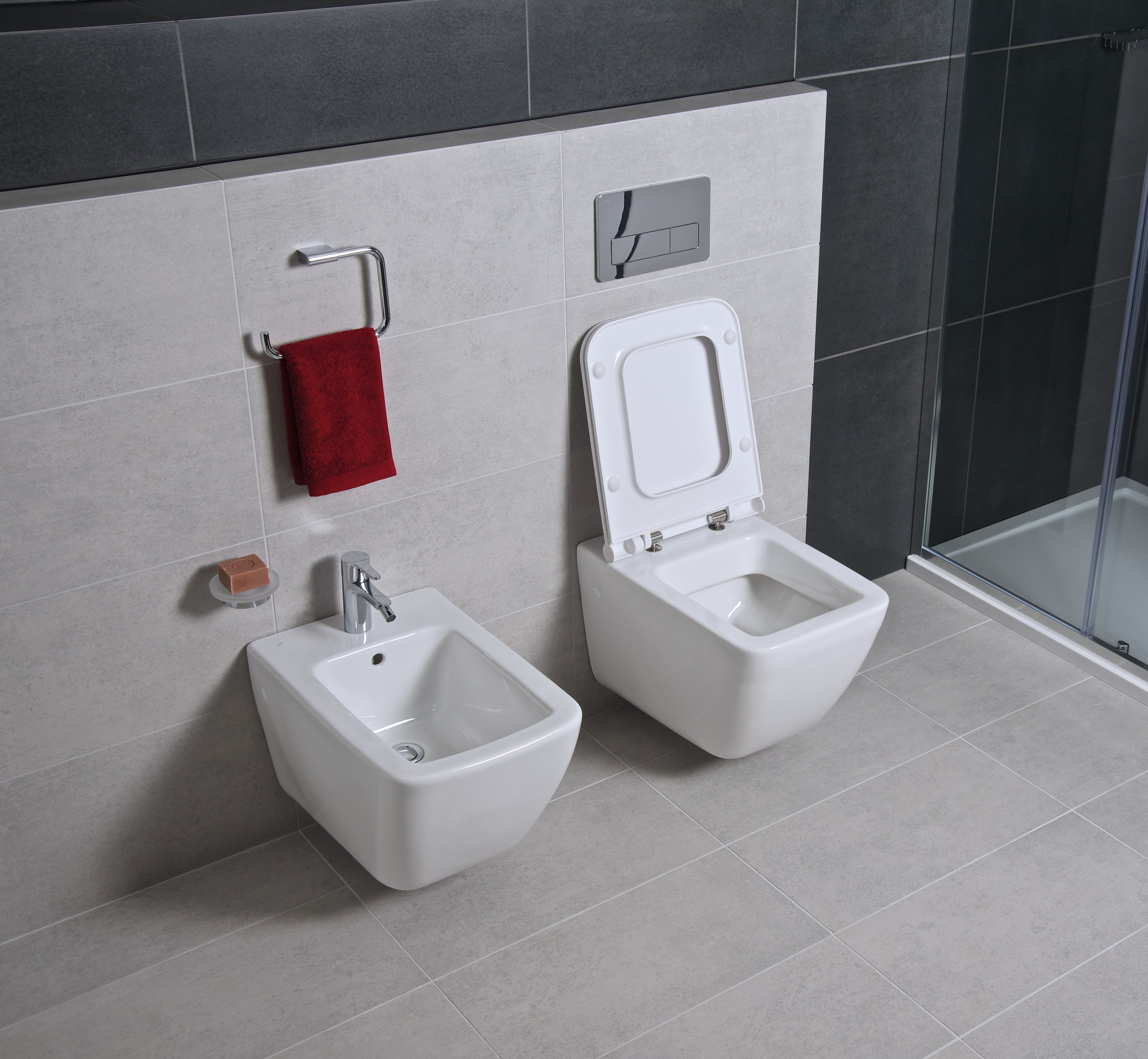 A Jika Pure keret nélküli zuhanyajtó egyszerű és tiszta dizájnja kiemeli a fürdőszoba elegáns stílusát. Jól kiegészíti azt a modern famintás minimalista Cubito bútor is. Többféle kivitelben készülnek, elegendő helyet biztosítanak, és törülközőtartó is a részüket képezi.
