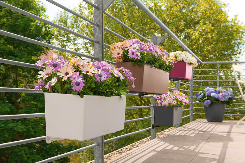 Figyeljünk oda, hogy milyen tájolású a teraszunk, és annak függvényében válasszuk ki a virágokat. Erre az esetre a formatervezőknek köszönhetően, nagy választékban vásárolhatunk design korlát kaspókat. Ezeket csak egyszerűen, felülről rá kell fűzni a korlátra és már készen is vagyunk. Ezekkel a design kaspókkal még egy kis pluszt kapunk virágaink mellé, mivel maga a kaspó is díszítő elemként működik.