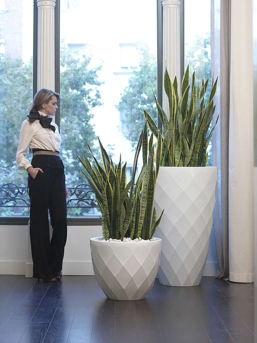 A nagyobb méretű kaspók szoborszerű megjelenése már önmagában is öltözteti a belső tereinket, de ha ehhez még hozzáadjuk a jól megválasztott növényt is, megszületik a végső látvány.