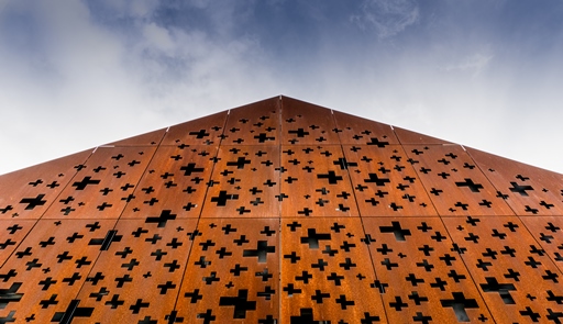 Így ha számba vesszük, inkább csak a csaptelepek, ajtó- és ablakvasalatok, kilincsek, esetleg padlóburkolatváltó profilok, csavarok és szegek ugranak be, amelyeknél a nyers erő és megbízhatóság a legfontosabb. Ha már a nyers erő és strapabíróság szóba kerül, miért ne kerülhetne fém olyan helyekre, ahol a tartósság ugyancsak nagyon fontos? Miért ne kerülhetne a homlokzatra?