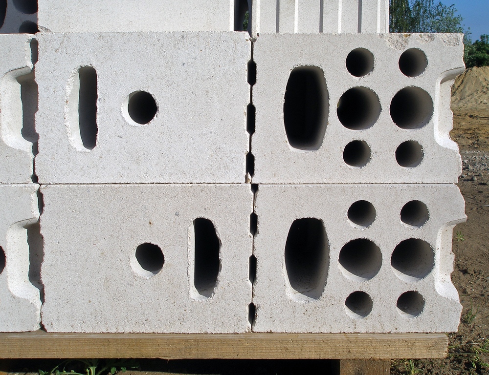 Nem így a gázbeton, vagy a könnyűbeton falazóelemek esetében, ahol annyi hasonlóság ugyan jelentkezik, hogy a blokk alapanyaga ugyancsak egyenletes keverékből áll, és nagyon homogén képet mutat, de egy ilyen falazóblokkon ritkán látunk látható, nagyobb méretű üregeket, mint a mázas kerámia esetén. Maga a falazóblokk porózus szerkezetű, mely leginkább a vulkáni tufához hasonlítható, de annál könnyebb, és könnyebben is alakítható. De a beton nyilván nem magától lesz ilyen porózus. Különböző adalékanyagok hozzáadásával (pl. alumínium) érik el, hogy a szerkezete ilyen ritka legyen. Amiatt, hogy a légrések kisméretűek, a falazóblokk sokkal kevésbé rideg, és törékeny, egyszerű eszközökkel is könnyen felezhető, darabolható. Mivel az ára ma már nagyon markánsan sem különbözik az agyagból készült társaihoz képest, így egy elgondolkodtató alternatívát kínál. Kivéve a hangszigetelő tulajdonságát, mert az alacsony anyagsűrűsége miatt ebben kevésbé szerepel jól.