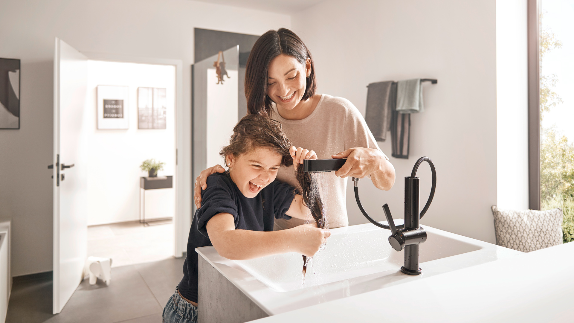Minél nagyobb a család, annál több szokás és új igény merül fel a fürdőszobában is. A Finoris mosdócsaptelep hosszan kihúzható zuhanyfeje sok olyan tevékenységet tesz lehetővé vagy kényelmesebbé, amelyeket a hagyományos csaptelepekkel nehéz kezelni, legyen szó egy reggeli gyors hajmosásról a mosdó felett, baba fürdetésről vagy egy S.O.S. folttisztításról.